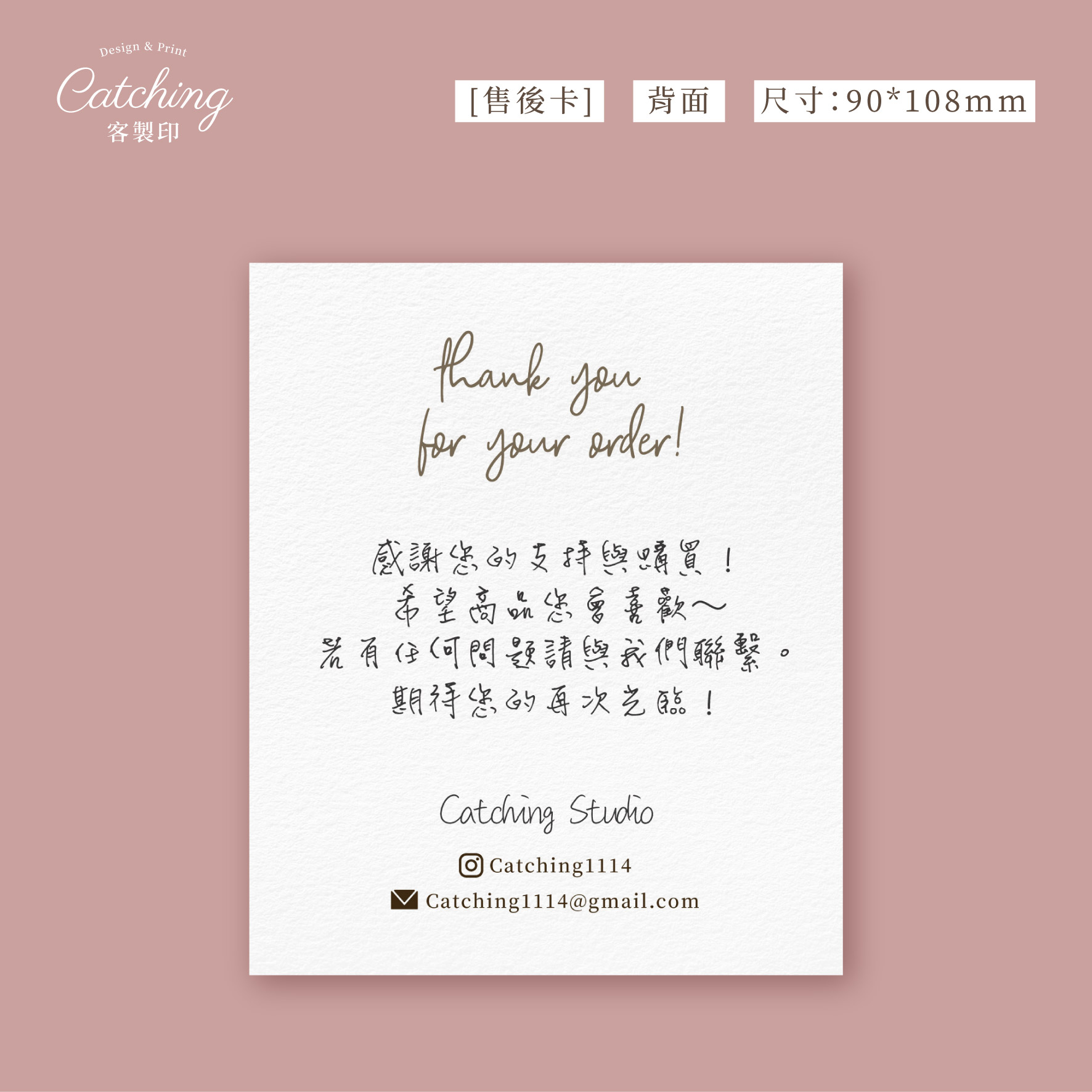 ‧如有自定圖片,檔案寄至catching1114@gmail.com(信件標題打上蝦皮ID名稱)